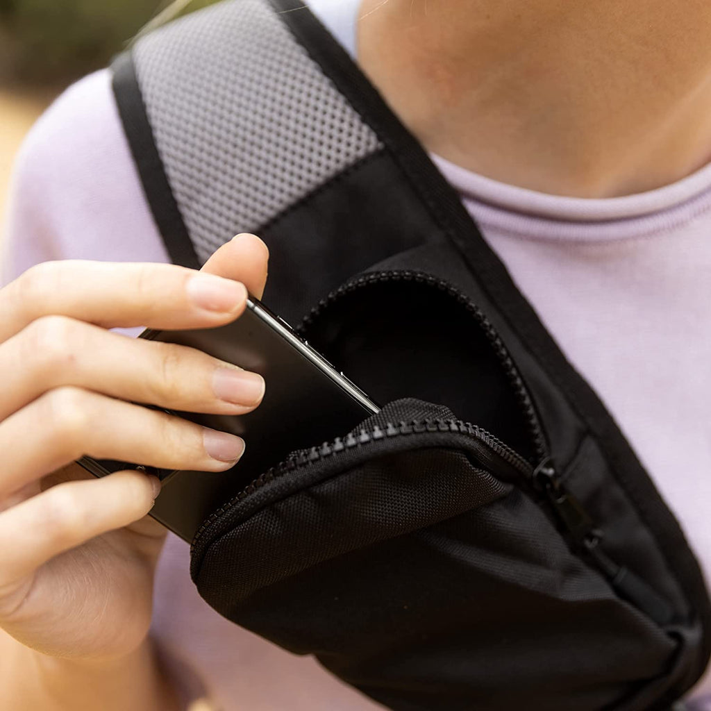 - DESIGNED FOR PHONES: The pocket on strap is sized to fit the most popular Apple and Samsung phones giving you easy access without taking off your backpack.