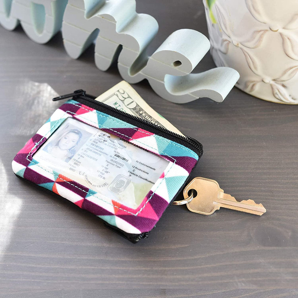 The Ambry GoWallets stylish but functional design allows you to carry credit cards, keys and cash in one compact wallet small enough to slip in your pocket. Two zip pockets for your money and cards and a clear plastic slot for your ID make it easy to travel light. The hidden keyring gives you the option of attaching your keys or tucking the ring out of the way. Each GoWallet pattern has a matching Ambry Rope Sling Bag, creating the option of a matched set of bag and compact wallet. They are made of durable cotton blend canvas with premium YKK zippers. Size: 4.25 x 2.75 Material: Cotton Blend Canvas