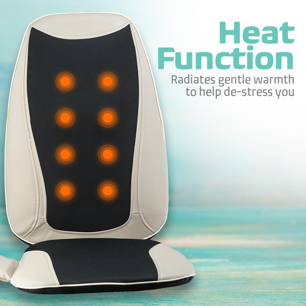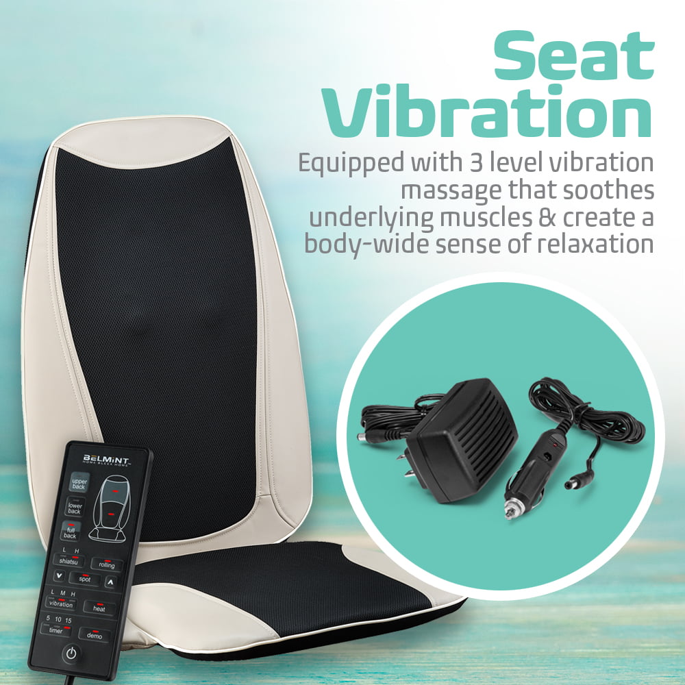 - Get warm heat to soothe soreness: This massage seat cushion is designed with a heat function that radiates gentle warmth to help de-stress. This soothing heat function relieves deep muscle tensions, soreness, nerves and other aches on your back. You can use it on a chair recliner and set the timer for 5, 10 or 15 minutes