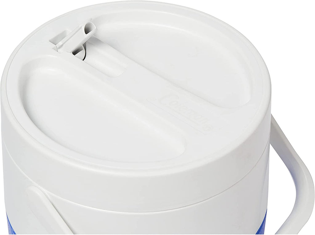 Easily access cold water and stay hydrated on hot days with the Coleman 1-Gallon Beverage Cooler. With its wide mouth top, this convenient water jug is easy to fill and allows you to add ice by the handful. The flip spout makes dispensing liquid easy and resists snagging to help minimize spills. Built for long-lasting performance, this beverage cooler features a durable design that resists dents, scratches, and fading. The screw-top lid stays securely closed to prevent leaks. A bail handle makes this water jug easy to carry with one hand.
