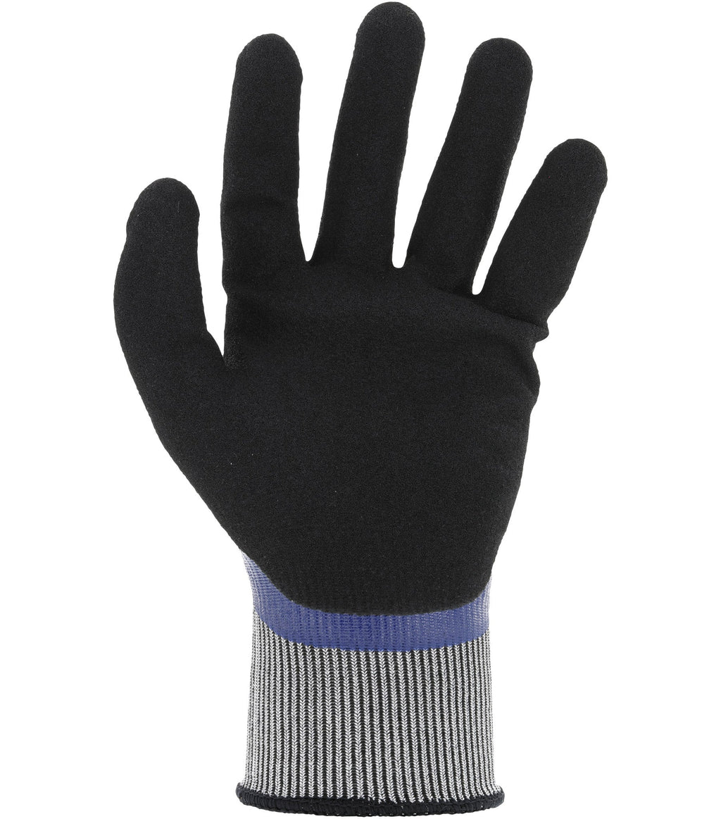 - Sandy textured nitrile palm coating protects working hands with EN 388: 2016 Level C & ANSI A4 cut resistance.