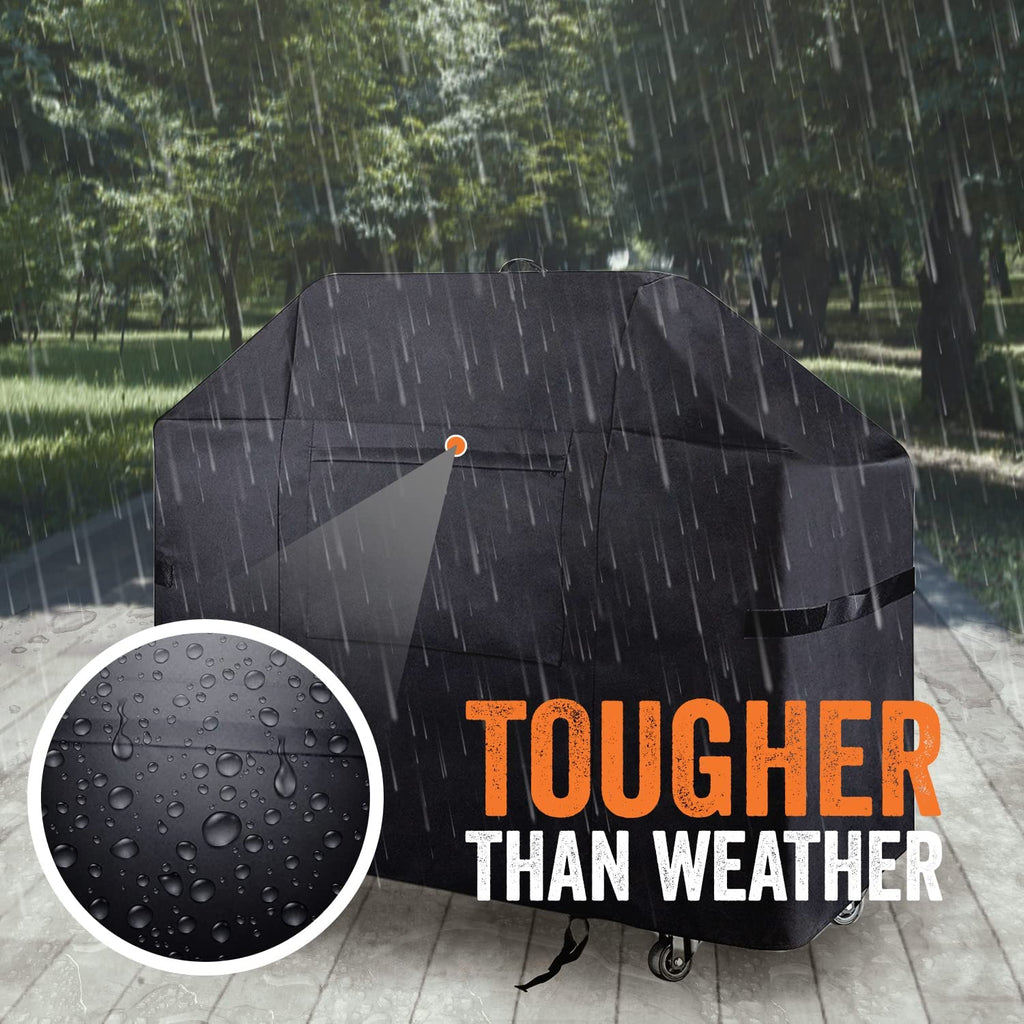 - ALL SEASON PROTECTION Gas grill covers heavy duty waterproof material offers year round protection from rain, snow, pollen, and wind. Will withstand blizzards, thunder storms and all weather conditions
